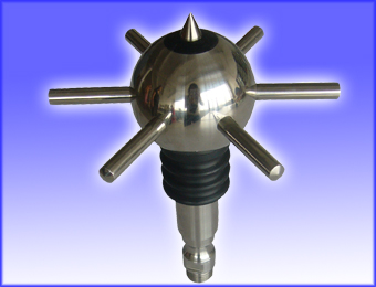 提前預(yù)放電避雷針是在傳統(tǒng)避雷針?lè)烹娫淼幕A(chǔ)上,引入了“促進(jìn)電離”這一預(yù)防電型避雷針的基本特性,從而達(dá)到了比普通避雷針更早的先導(dǎo)放電,擴(kuò)大了保護(hù)半徑,提高了安全系數(shù)。在雷電條件下,當(dāng)雷電下行先導(dǎo)接近地面時(shí),任何導(dǎo)電的表面均會(huì)產(chǎn)生一個(gè)上行先導(dǎo)。在被動(dòng)避雷針的情況下,只有在長(zhǎng)時(shí)間的電荷重聚之后,才會(huì)傳播上行先導(dǎo)。提前放電接閃器的上行先導(dǎo)的激發(fā)時(shí)間大大縮短。