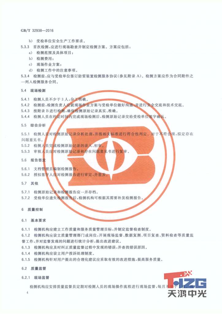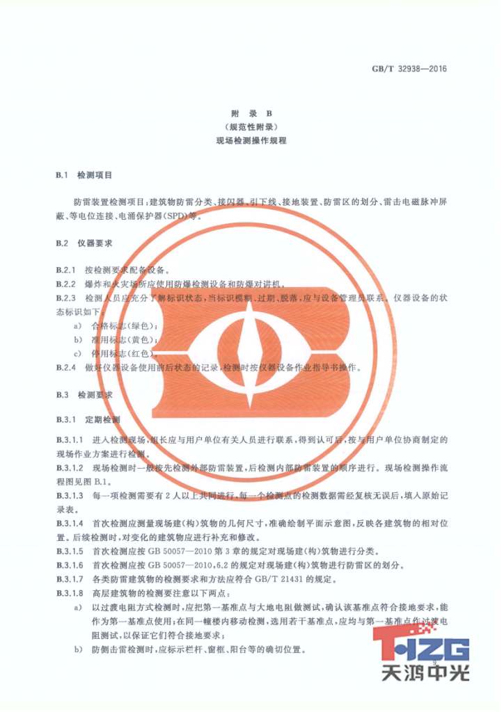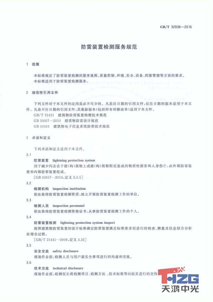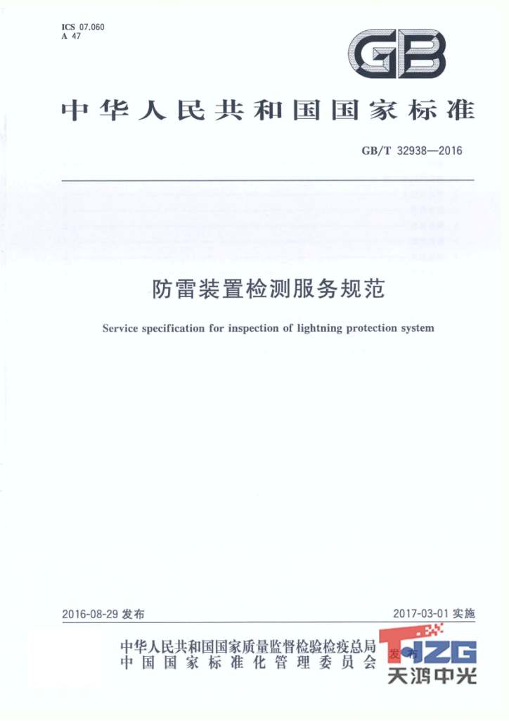 防雷裝置檢測(cè)服務(wù)規(guī)范 GB/T32938-2016